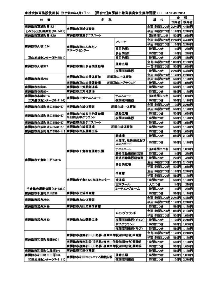 なお、千倉B&G海洋センターおよび千倉総合運動公園は、直接千倉総合運動公園へ問い合わせてください。